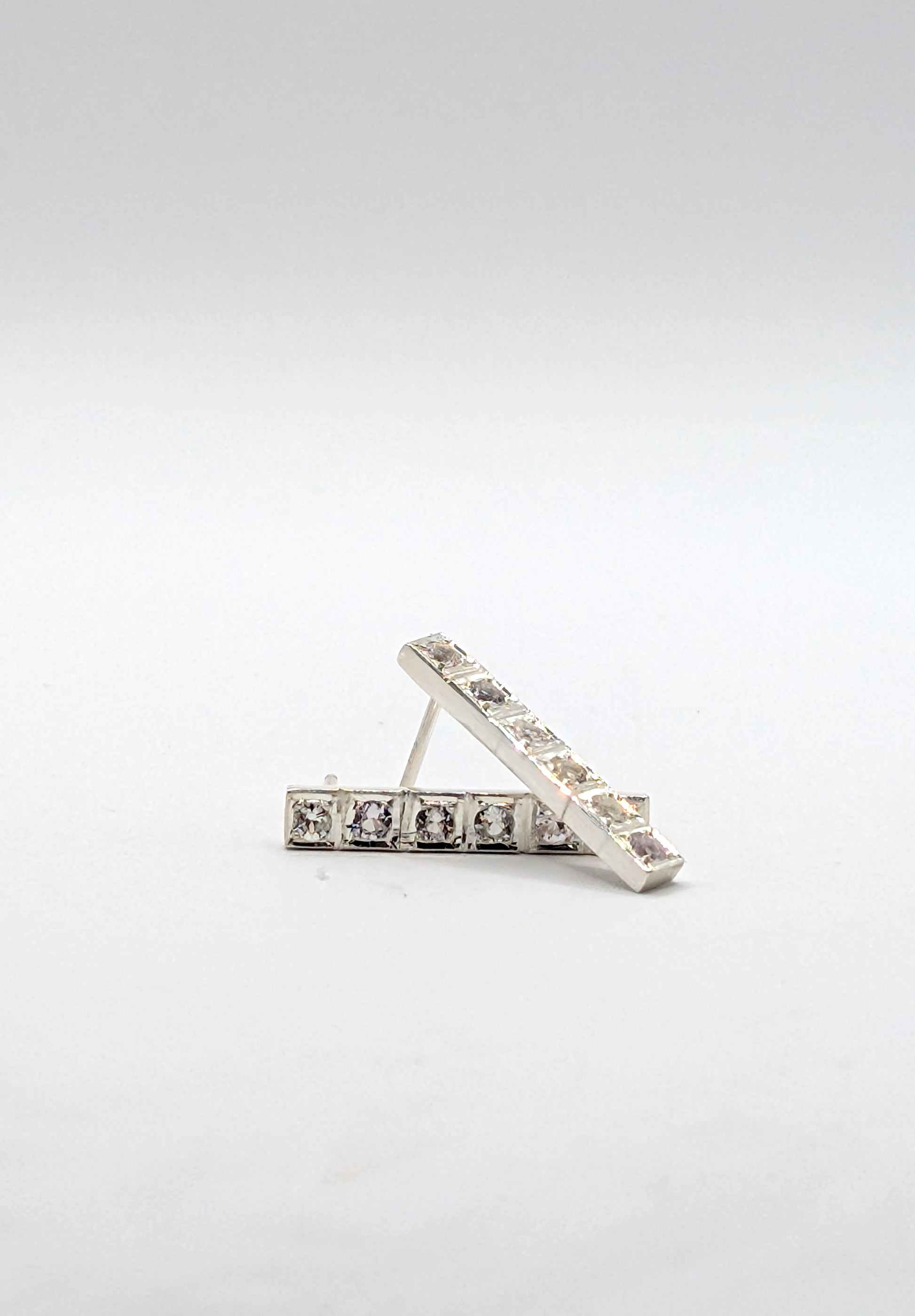 Crafted in sterling silver, these linear earrings feature an elongated, minimalist silhouette set with natural sapphires. The refined geometry of the design enhances the stones’ natural brilliance, creating a balanced interplay of light, colour, and simplicity.