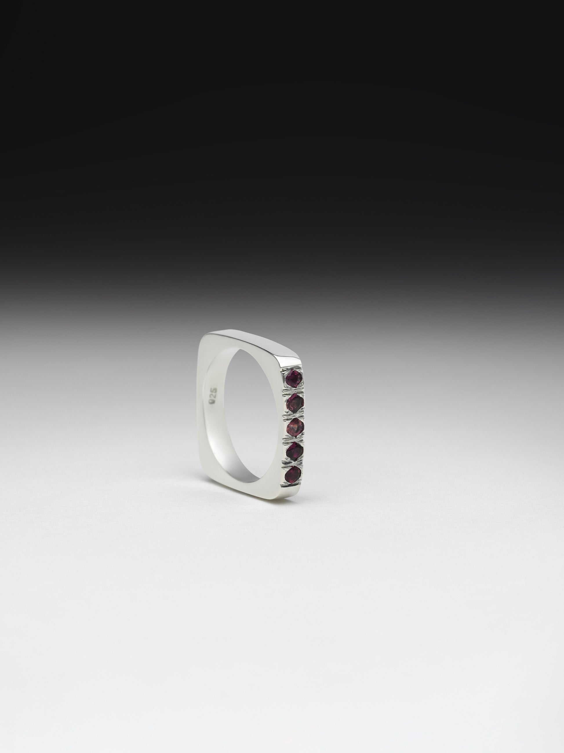 A series of exquisite unheated Australian pink sapphires adorn this ring, carefully set within a sculptural profile of polished sterling silver.