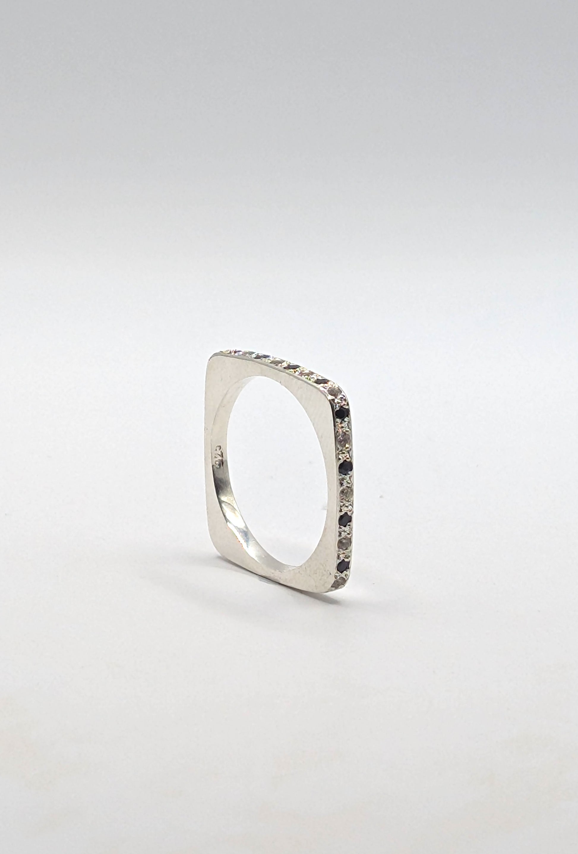 Inspired by the timeless elegance of my grandmother, this slender sterling silver ring is set with alternating white and blue sapphires. Its refined, understated sparkle echoes a kind of beauty that time can’t touch: graceful, confident, and forever in style.
